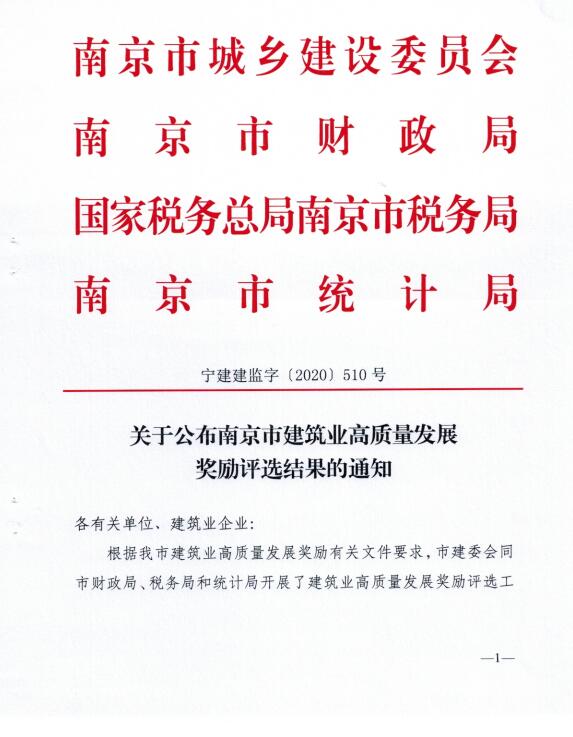 公司喜獲“南京市建筑業(yè)高質(zhì)量發(fā)展獎勵造價咨詢類十強”